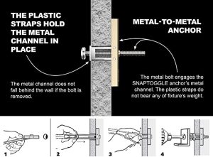 • Spreading the Load: When tightened, the wings of a toggle bolt spread out behind the drywall, distributing the weight of the grab bar over a larger area. This is important because hollow walls themselves can’t support a lot of weight on a concentrated area.