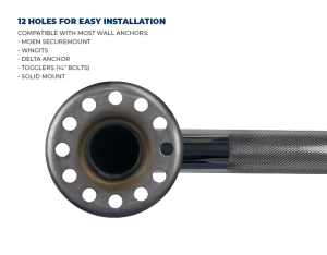 All grab bars on GrabBars.com have a concealed screw design for a more decorative look. Each grab bar comes with premium flange mounts to facilitate installation, 3 set screws which allows pre-mounting to the wall before attaching the grab bar (a game changer!), twist-on flange covers and mounting hardware. This includes a twist-on flange cover with a flange featuring multiple anchoring points to facilitate installation.